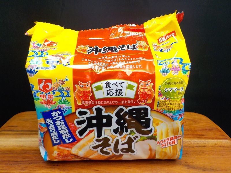 かつおの出汁とトンコツのスープを混ぜあわせて作る沖縄そばと紅生姜の相性もよいです。