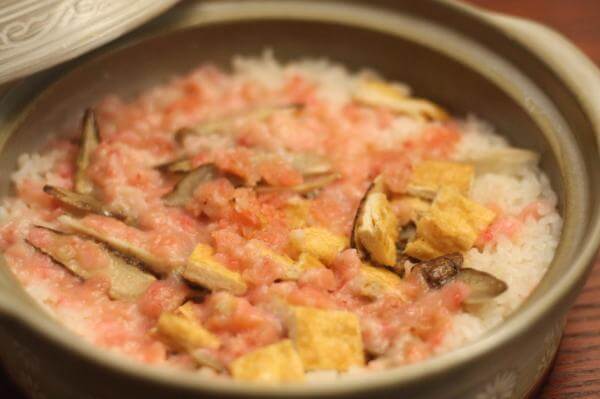 しっとりと鮮やかな花弁をちらしたような炊き込みご飯ができます。