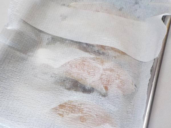 水分と臭みをぬいた鮭の身の表面についた水分をふきとりましょう。