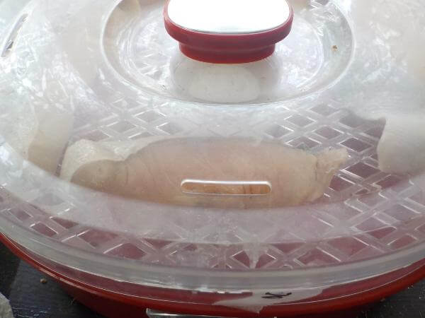35℃で12時間ほど乾燥させました。鮭の乾燥ぐあいを確認しながら、乾燥時間は調整してください。