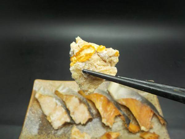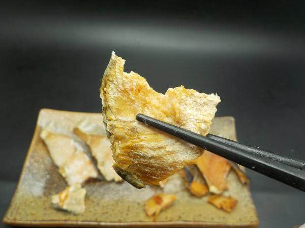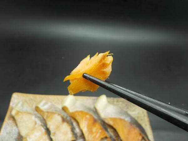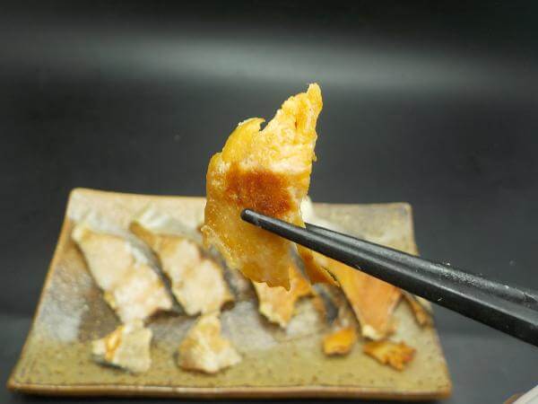 鮭の身は、かしゅッといった食感です。汁気は、ほとんどなくなり、鮭の身を何度も噛まないと鮭の旨味がしみでてきません。