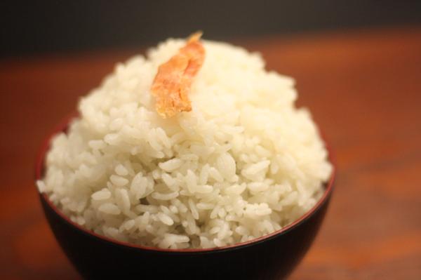 しゃりは、白米。鮭の風味がしみこみ、白い白米を噛むと、ぷ~んと清潔な緑の香りが鼻にぬけていく絶品。