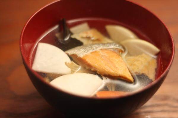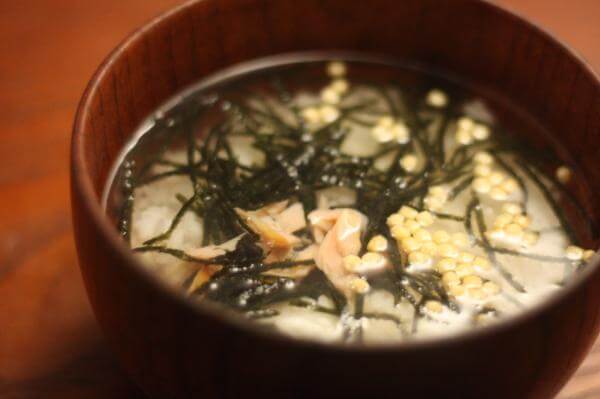 お湯のなかに、鮭の旨味が、いい塩梅に溶けこみ、それでいてクドくなく飲みやすいおつゆになります。