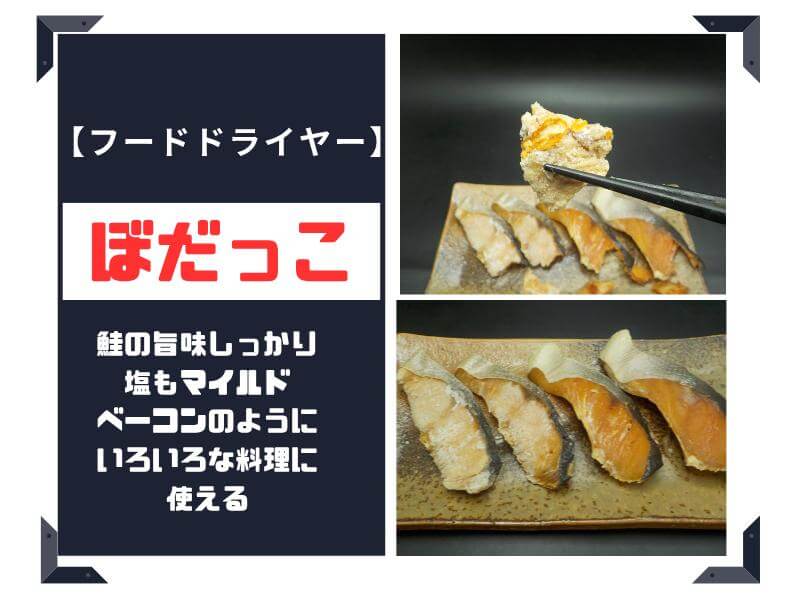フードドライヤーで作るぼだっこ 塩をふり漬けこみ、フードドライヤーにいれるだけ 天候を気にすることなく乾燥できる 塩分も調整可能【アレンジレシピあり】