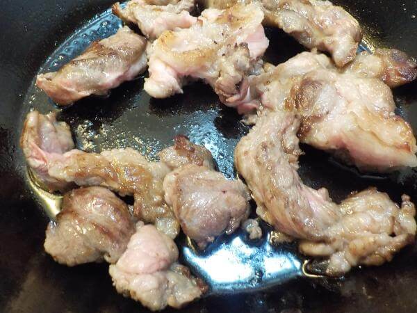 牛すじをフライパンで焼き、余計な脂と雑味をおとします。