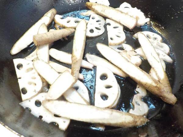 牛すじからしみでた脂で、ごぼうやレンコンを炒めると滋味あふれる野菜炒めを作れます。