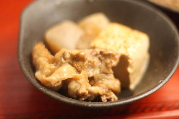 舌のうえに牛すじをのせると、いい塩梅の甘みを味蕾がかんじ、味噌の塩っぽさすらも甘くしたてあげられています。
