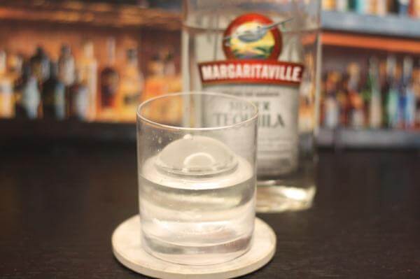 透明な大きい氷のうえをMARGARITAVILLEをすべらしそそぎいれました。