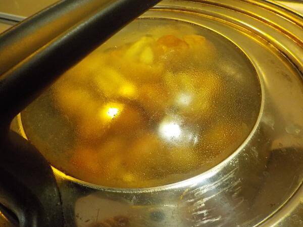 あとは鍋にフタをし、弱火でコトコトと鍋を温めるようになめたけを解凍しましょう。