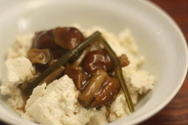 なめたけをのっけるだけで、お手軽価格の豆腐をおいしく食べられるように。