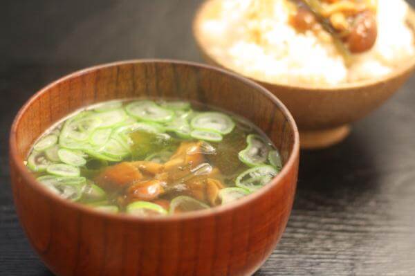 なめたけの気品ある旨味は、味噌だけでなく、青ネギやワカメなど一般的なみそ汁の具ともあわせやすいです。