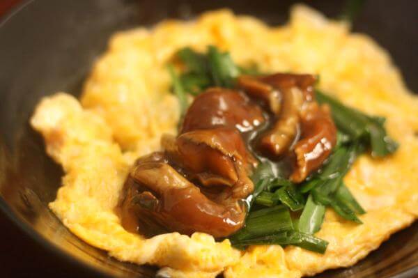 ニラの風味をまるくし、なめたけの旨味は鶏卵の旨味のなかに自然にしみこんでいきます。