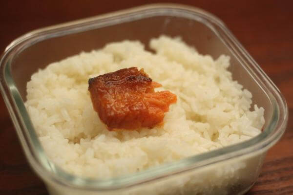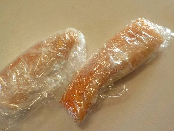 脱水シートでなくとも、まえもって鮭のはらみの重量の5%の塩をふりかけておくと水分と臭みをぬくことができます。
