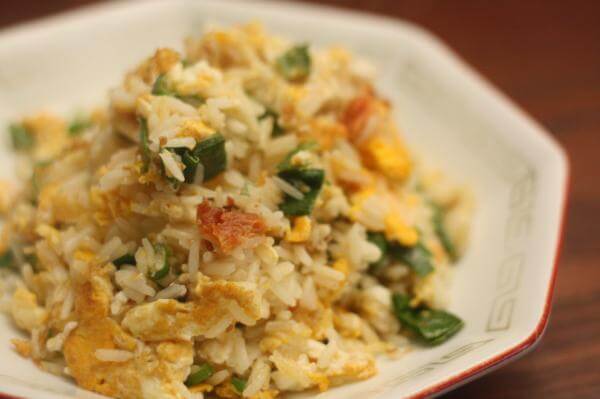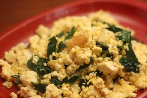 卵と豆腐の炒めものに、鮭のはらみのぼだっこをくわえました。