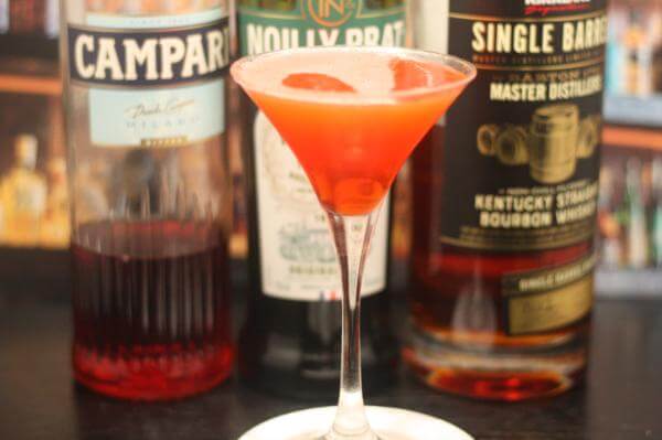 カンパリの陽気な酸味。ベルモットの複雑な薬草の香り。そして、すべての味わいの土台となる、どっしりとした風格のバーボンの味わい。