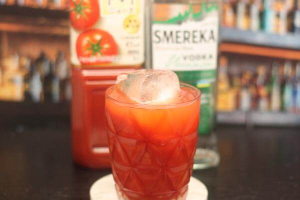 そして、お好みの量のトマトジュースをいれ作る血まみれの女王とよばれるカクテル。