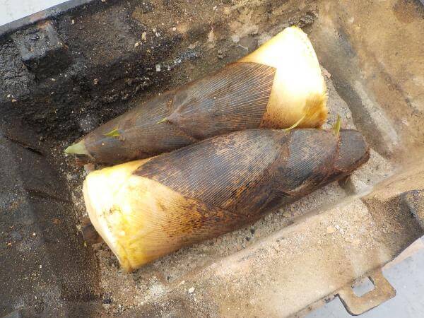 タケノコが生えている竹林にいき、掘ったそばから炭火で焼きあげてやるタケノコ料理です。