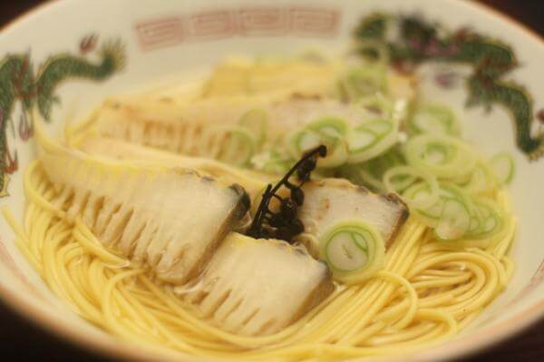 タケノコの時期にしか食べられない豪華な一杯。山椒をかざり、シビレを追加しました。