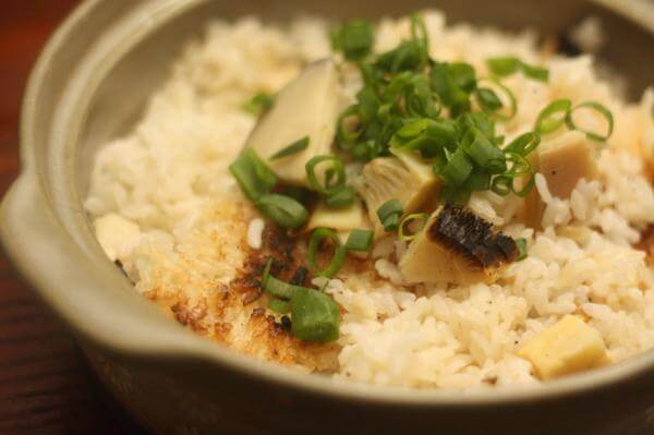 オコゲの香りが自然にたちのぼります。タケノコの風味、焦げ、すべてが白いご飯のなかに沈みこんでいます。