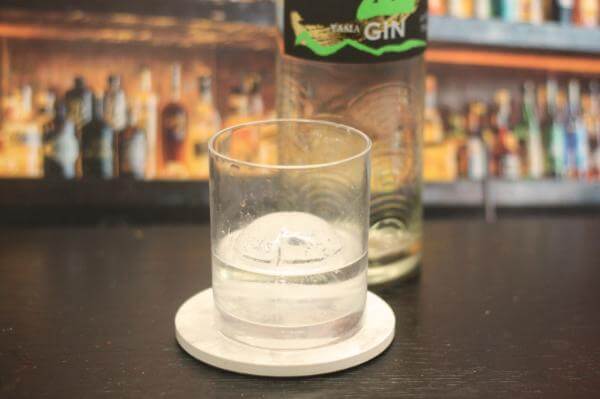まるい透明な氷の表面をつたわせてグラスにそそぎいれた山ジンの香りは、レモンの皮でこよりをつくったように細くシャープなものなっています。